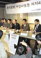 ½ºÆ÷Ã÷½Å¹®°ú ¿©¼ºÁö·ÎºÎÅÍ ¶°¹Ð¸®µí Ãâ¹ßÇÑ ±×ÀÇ Ä¿¹Ö¾Æ¿ô ¿©Á¤Àº °¢ ¹æ¼Û»ç ¿¬¿¹¿À¶ôÇÁ·Î±×·¥ÀÇ Ä«¸Þ¶ó ¼¼·Ê¸¦ °ÅÃÄ Çè³ÇÑ ÀÎÅÍ³Ý ¹Ù´Ù ¼Ó¿¡ ´øÁ®Á³´Ù. ±àÁ¤°ú ºÎÁ¤, µ¿Á¤°ú Çø¿À »çÀ̸¦ ¿À¶ô°¡¶ôÇÏ´ø ÀÌ µ¿¼º¾ÖÀÚ ¾ÆÀÌÄÜÀº ±×ÀÇ ¡®¹æ¼Û Ã⿬±Ç¡¯À» ¿ËÈ£ÇÏ´Â °¢ ½Å¹® ¹æ¼Û¸é¿¡ ¸çÄ¥ ¾ÈÂøÇß´Ù°¡ ¹®È¹æ¼Û ¶óµð¿À <¿©¼º½Ã´ë> ÀüÆÄ¸¦ Ÿ°í °øÁßÀ¸·Î ³¯¾Æ°¬´Ù. ÅäÅ©¼î´Â ÇÏ¿°¾øÀÌ °øÁßÀ» ¶°µ¹´ø ±×¸¦ Àá½Ã ´Ù½Ã Ä«¸Þ¶ó ¾Õ¿¡ ºÒ·¯ ¾ÉÇû´Ù. Çѱ¹»çȸ Àüü°¡ ¡®¹«¾ùÀÌµç ¹°¾îº¸¼¼¿ä¡¯¸¦ Âï´Â µíÇß´Ù. ¸ðµÎµé µ¿Á¤½É °¡µæÇÑ Ç¥Á¤À¸·Î ±×¸¦ ±¸°æÇß´Ù. ±×¸®°í ²÷ÀÓ¾øÀÌ ¼ö±º°Å·È´Ù. Àº¹ÐÇÑ ¼ö±º°Å¸², ¡°°áÈ¥Çß´Ù¡± ȤÀº ¡°¿ø·¡ <»Ç»Ç»Ç>¿¡¼ À߸± ¿¹Á¤À̾ú´Ù¡±´Â µî ±¸±¸ÇÑ µÞ¼Ò¹®ÀÌ À̾îÁ³´Ù. ±× Áß¿¡¼µµ ÀÚ¼Àü Á» ÆÈ¾Æ º¸·Á°í Ä¿¹Ö¾Æ¿ô ¡®¼î¡¯¸¦ Çß´Ù´Â ¼Ò¹®Àº Áý¿äÇÏ°Ô ±×¸¦ ±«·ÓÇû´Ù. Ã¥ ¾ê±â¸¦ ²¨³»ÀÚ ±×´Â ¸»¹®ÀÌ ÅÎ ¸·È÷´Â µí ¼ûºÎÅÍ °ñ¶ú´Ù. ¡°È¤½Ã Ã¥À» ³¾Áöµµ ¸ô¶ó¿ä. ¾î¼¸é Á¦°Ô ³²Àº ¼±ÅÃÀº ±×°Í¹Û¿¡ ¾ø´ÂÁöµµ ¸ð¸£ÁÒ. ±×·±µ¥¡¦. ¸¸¾à Ã¥ ÆÈ¾Æ ¸î¾ïÀ» ¹ø´Ù°í Ĩ½Ã´Ù. ±»ÀÌ Ä¿¹Ö¾Æ¿ôÇÏÁö ¾Ê°í ¿½ÉÈ÷ Àϸ¸ Çß´Ù¸é ±×°Ç ¸î³âÀÌ¸é ¹ú ¼ö ÀÖ´Â µ·ÀÔ´Ï´Ù. µ· ¶§¹®À̶ó¸é ±»ÀÌ ÀÌ·² Çʿ䰡 ¾øÁÒ¡¦.¡± ¡®È«¼®ÃµÀÇ Ä¿¹Ö¾Æ¿ôÀ» ÁöÁöÇÏ´Â ¸ðÀÓ¡¯ÀÇ ±âÀÚȸ°ßÀº ±×(ÀÇ ¹®Á¦)¸¦ °¡±î½º·Î °ø·ÐÀÇ ÀåÀ¸·Î ²ø¾î³Â´Ù. ÀαÇȰµ¿°¡, ¿©¼º¿îµ¿°¡, ±³¼ö, ±¹È¸ÀÇ¿ø µî ¡®À̼º¾ÖÀÚ·Î ¿©°ÜÁö´Â¡¯ 100¸íÀÌ Âü¿©ÇÑ ÀÌ ¸ðÀÓÀº ±âÀÚȸ°ß¹®¿¡¼ ¡°À̹ø »çŰ¡ °³ÀÎÀÇ ÀÚÀ¯¿Í Á¸¾öÀ» Á¸ÁßÇÏ´Â ¼º¼÷ÇÑ ¹ÎÁÖÁÖÀÇ »çȸ·Î ³ª¾Æ°¡´Â ±æ¿¡¼ Áö±ØÈ÷ Áß¿äÇÑ ¹®Á¦ÀÓÀ»¡± ÁöÀûÇÏ¸ç ¡°È«¼®Ãµ¾¾ÀÇ Ä¿¹Ö¾Æ¿ôÀ» µÑ·¯½Ñ ¸Í¸ñÀûÀÎ °ø°Ý°ú ºñÇÕ¸®ÀûÀÎ Çø¿À¸¦ ¹°¸®Ä¡´Â µ¥ ¿ì¸®ÀÇ ÈûÀ» ¸ðÀ» °Í¡±À̶ó°í ¼±¾ðÇß´Ù.